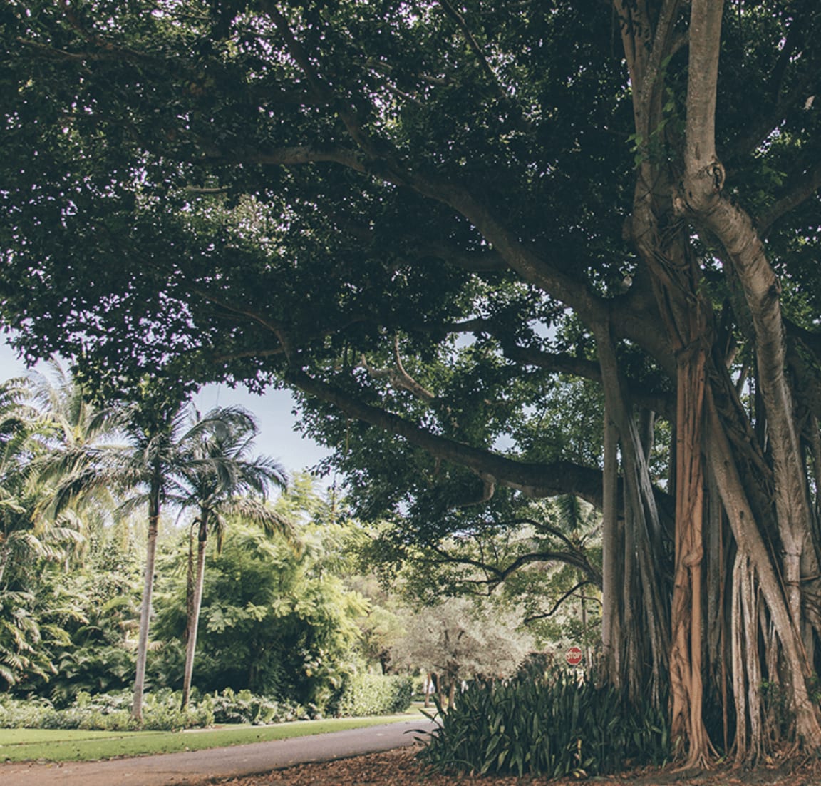Today, in keeping with MacArthur’s vision, Palm Beach Gardens is lined with rolling terrain, exotic flora, pastel posies and palm-shaded trees. The neighborhood’s original Banyan trees are still standing as MacArthur insisted that the city streets be constructed around the rich foliage that was already planted, noting that he could buy everything but age. Two gentle and stunning Banyan trees sit at the entrance of the city. Palm Beach Gardens has been named a Tree City USA for more than 30 years.